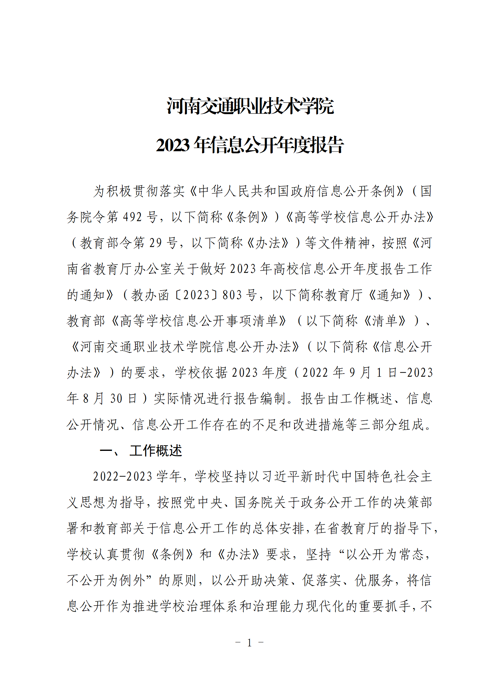2023年河南交通职业技术学院信息公开报告