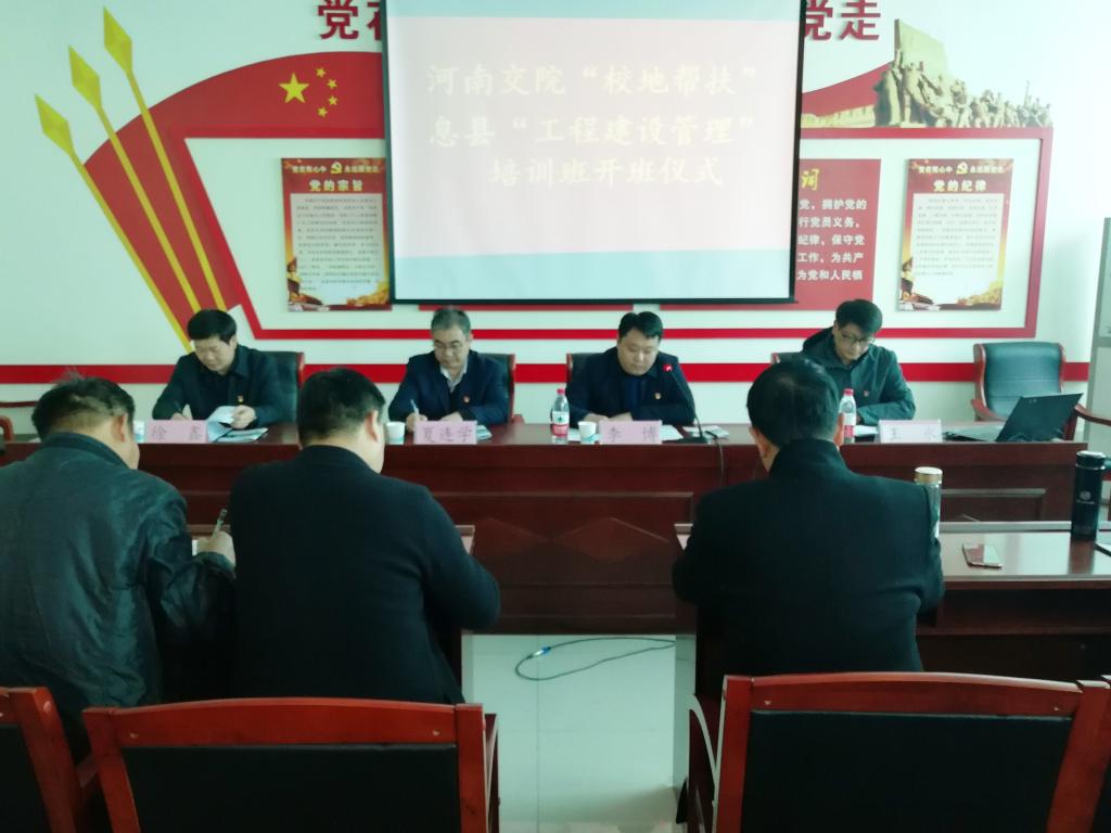 11月25日下午,学院在新校区致用楼党员之家举办了“校地结对帮扶”息县“工程建筑管理”培训班开班仪式。学院副院长夏连学,息县县委常委、副县长李博,息县住房和城乡建设局局长徐鑫等出席活动。典礼由建筑工程系党总支书记王永主持。
