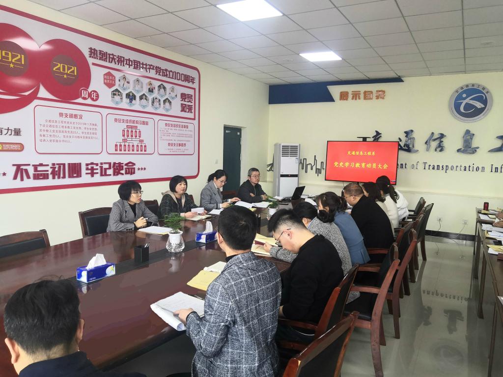 交通信息工程系党总支:强调要认真学习贯彻习近平总书记在党史学习教育动员大会上的重要讲话,深刻认识开展党史学习教育的重要意义,提高政治站位;要制定系部具体活动实施方案,突出系部特色,融入日常、抓在经常;要切实增强抓好党史学习教育的思想自觉、政治自觉、行动自觉,切实把学史明理、学史增信、学史崇德、学史力行贯穿学习教育的全过程,将党史学习教育成果体现在履职成效上,以优异成绩庆祝中国共产党成立100周年。