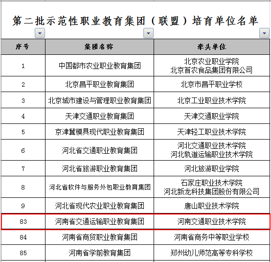 6月4日,教育部职业教育与成人教育司正式公布了第二批入围国家示范性职业教育集团(联盟)培育单位名单。我校牵头成立的河南省交通运输职业教育集团成功入选(具体见《关于公布第二批示范性职业教育集团(联盟)培育单位名单的通知》教职成司函2021【25号】文件)。本次入选是继2020年成为河南省首批示范性职业教育集团(联盟)之后,集团化办学再获殊荣。