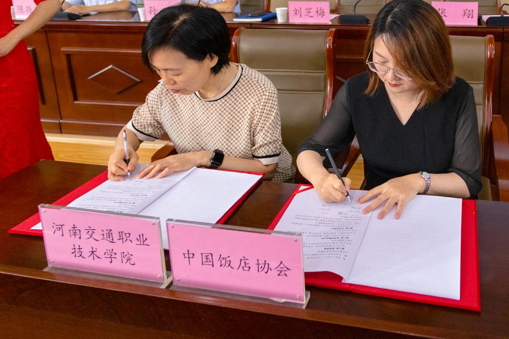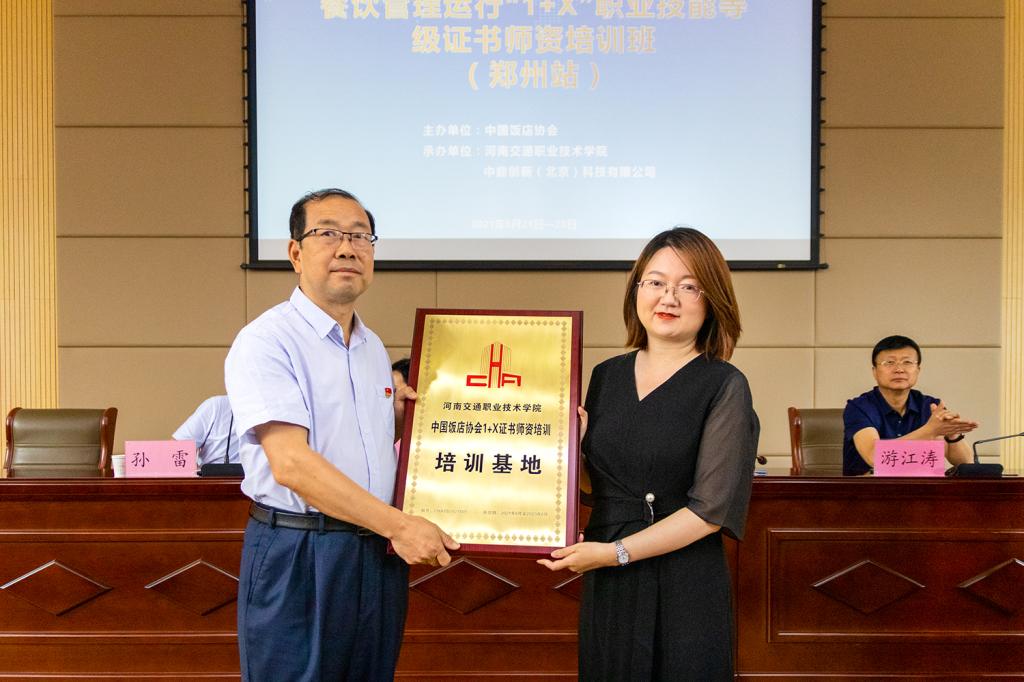 餐饮管理运行1+X职业技能等级证书由中国饭店协会申报并入选教育部第四批职业技能等级证书名单。6月20日上午的培训开班典礼上,副校长刘芝梅与中国饭店协会教育学院副院长张翔共同签署了“餐饮管理运行1+X职业技能等级证书师资培训基地合作协议”。张翔和商务旅游系主任陈振锋进行了培训基地的授牌和接牌仪式。