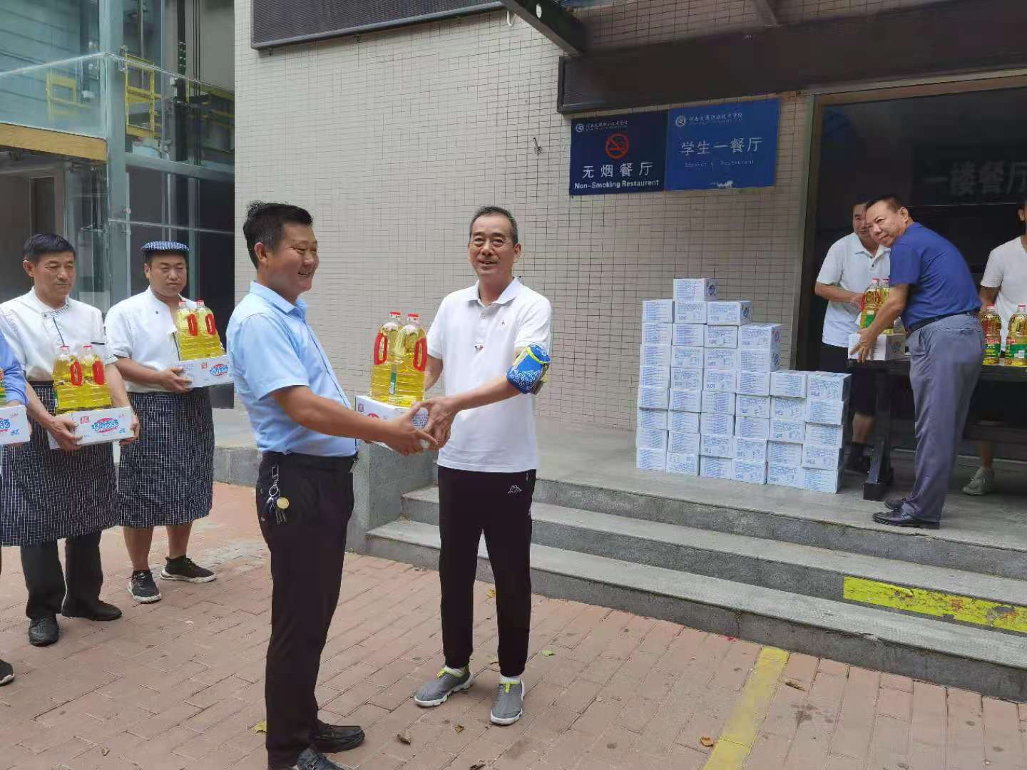7月28日上午,党委副书记孙建立带领工会负责人一行到后勤服务集团,看望慰问在校防汛救灾工作人员,并为他们送来慰问品。