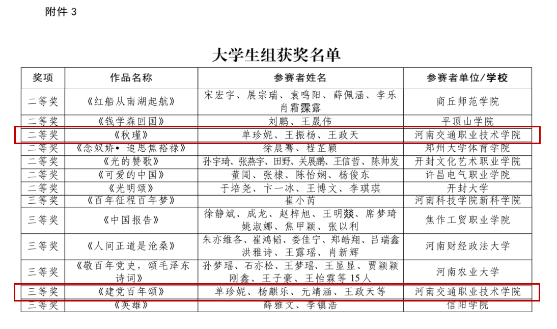 近日,由河南省教育厅主办的“2021年中华经典诵写讲大赛”圆满结束。在来自全省各学校参赛作品的激烈竞争中,由我校学生朗诵的作品《秋瑾》荣获二等奖,《建党百年诵》荣获三等奖。
