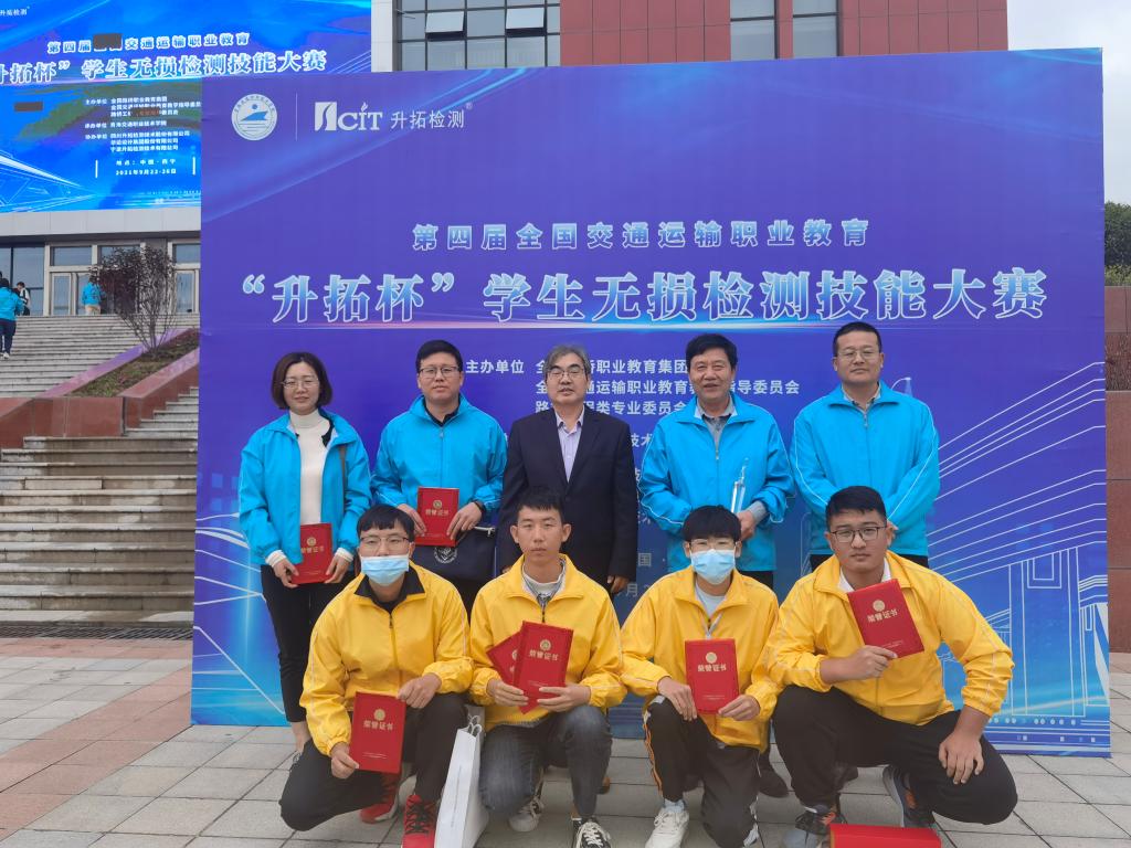 9月22日至26日,第四届全国交通运输职业教育“升拓杯”学生无损检测技能大赛在青海交通职业技术学院举办,学校代表队赢得了高职组锚杆长度测定项目单项三等奖1项、钢筋保护层厚度及钢筋间距测定项目单项三等奖1项、混凝土结构厚度及缺陷测定项目单项三等奖1项,理论单项奖三等奖3项,无损检测技能竞赛团体二等奖1项。