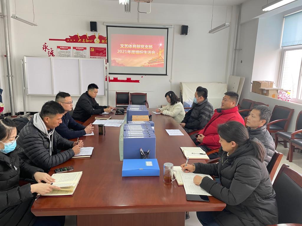 文艺体育部党支部召开2021年度组织生活会。党支部书记张焕代表支部进行2021年党建工作述职,通报支部建设上存在的问题,听取党员的意见和建议,查找不足,明确今后努力的方向。支部党员采取个人自评、党员互评的方式,开展批评和自我批评。每位党员对照党中央和习近平总书记的号召和要求,对照新时代合格党员标准,对照入党誓词,对照革命先辈和先进典型等,开展个人检视剖析,查摆自身问题,并填写党员整改承诺书,与会党员以无记名方式填写测评表,对支部党员进行民主测评。会上,还组织全体党员集中学习了习近平总书记“七一”重要讲话、党的十九届六中全会精神、党章和《中国共产党组织工作条例》《中国共产党普通高等学校基层组织工作条例》等党内法规文件。