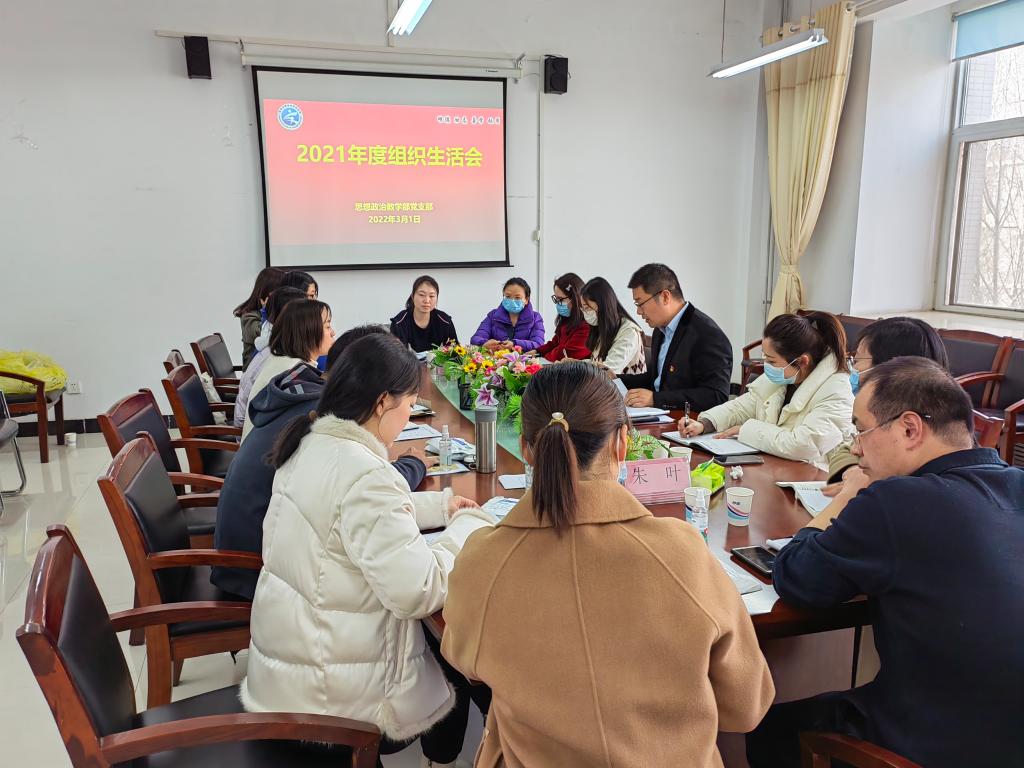 思想政治教学部党支部在马克思主义学院会议室召开2021年度组织生活会。党支部教师党员参加会议,会议由党支部书记刘喜要主持。会上,刘喜要带领全体党员集体学习了习近平总书记《坚持走中国特色社会主义法治道路 更好推进中国特色社会主义法治体系建设》等系列讲话精神,要求大家在学习过程中切实做到深入思考学、联系实际学、融会贯通学,打牢思想基础。全体党员对照合格党员标准、入党誓词、对照革命先辈和先进典型,联系个人工作实际进行党性分析,认真查摆个人在政治、思想、学习、工作、能力、纪律、作风等方面存在的问题及不足,开展批评和自我批评及谈心谈话活动,明确今后整改方向,并制定了相应整改措施。最后,支部按照个人自评、党员互评、民主测评的程序开展了民主评议党员工作。