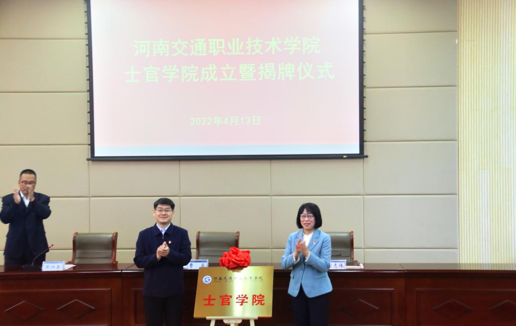 刘志伟宣读了河南省交通运输厅同意我校整合设立士官学院的批复,以及学校党委关于成立士官学院和指定士官学院筹备负责人的决议,明确了士官学院的职责。随后曹焱、刘志伟共同为士官学院揭牌。