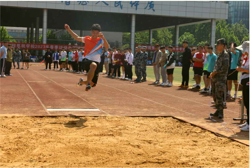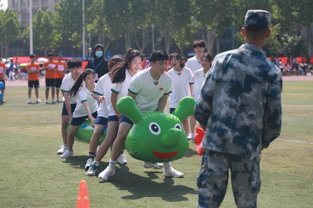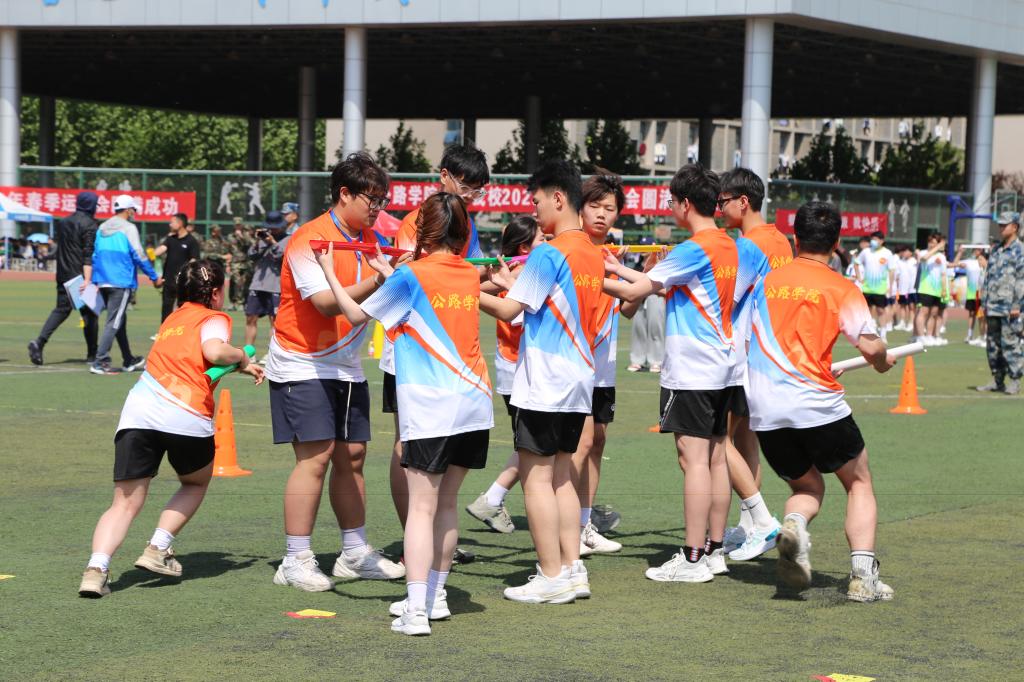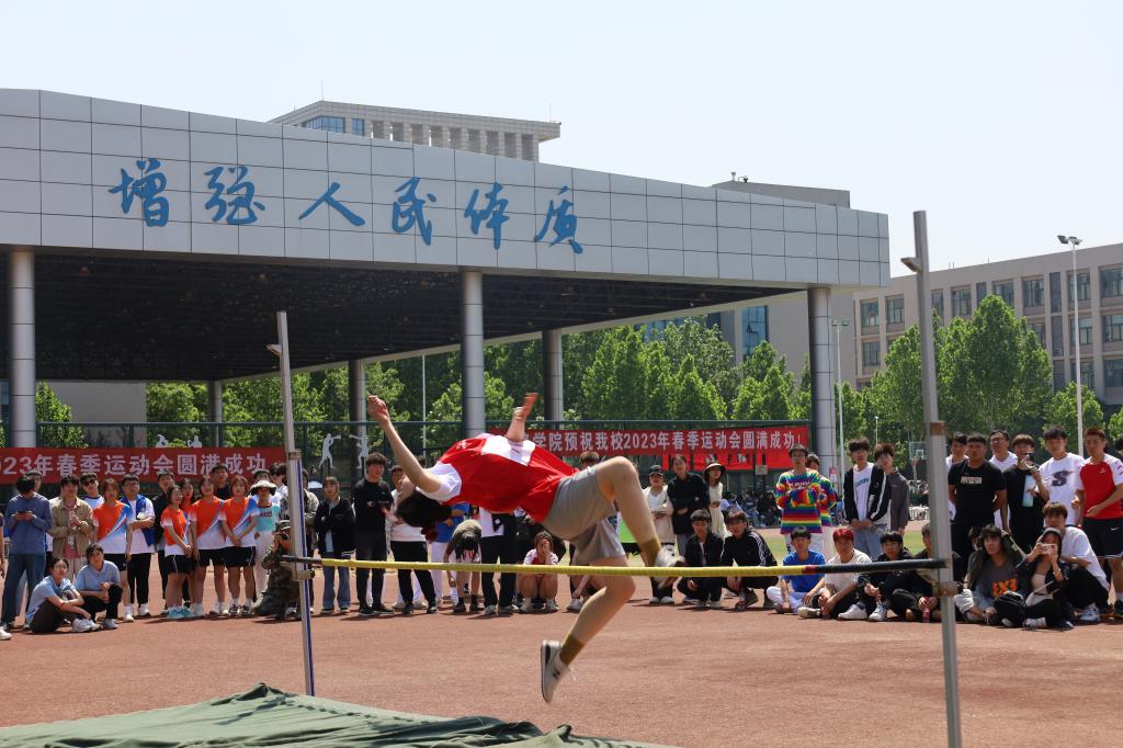 “我宣布,河南交通职业技术学院2023年春季运动会正式开始!”伴随着焦宏涛洪亮的声音,各项赛事有序开始。期间,全校2000余名运动员分别进行了“疯狂毛毛虫”竞速、火线营救、珠行万里等9个集体项目和跳高、跳远、铅球3个田赛项目的比拼。赛场上,运动员齐心协力、奋勇争先,裁判员严明公正、认真负责,啦啦操队员踏歌起舞、青春飞扬,观众文明观赛、呐喊助威,激昂的加油声、欢呼声此起彼伏,五彩斑斓的队服和洋溢着青春朝气的笑脸勾画出一道道靓丽的风景线。