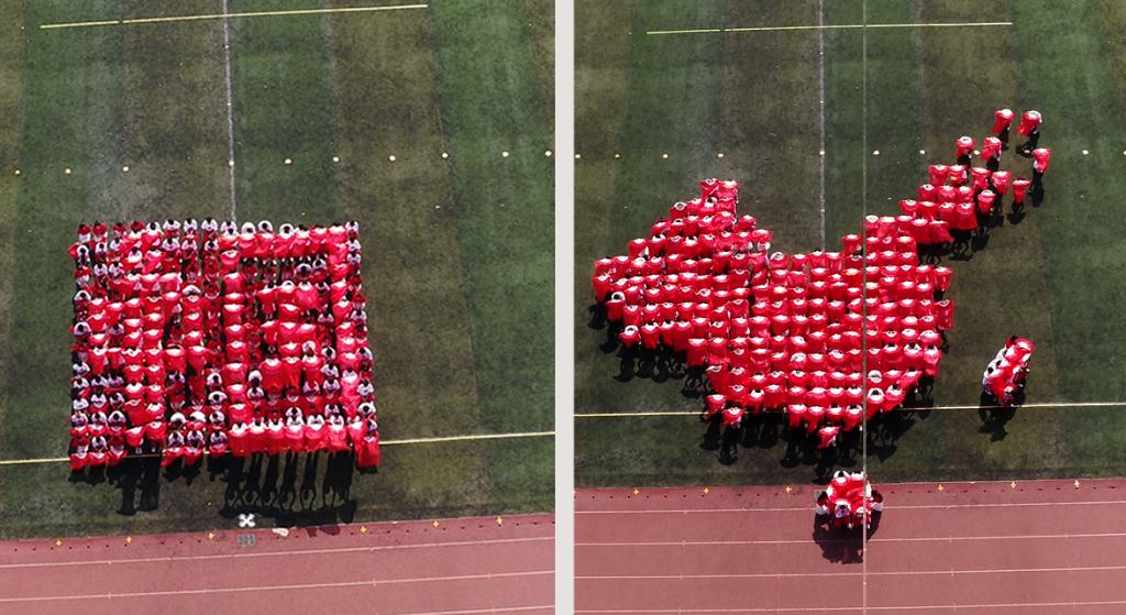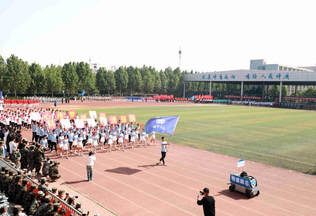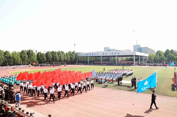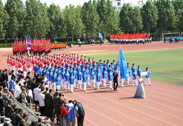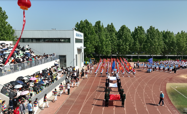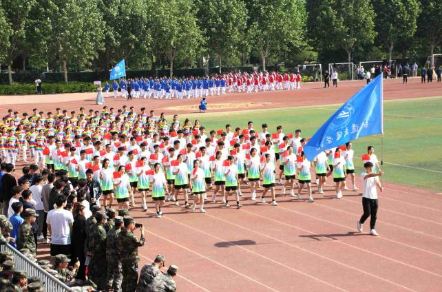 随后,红旗方阵和9支代表方阵依次入场,全场师生高唱国歌,以英姿勃发的风貌共同迎接运动会的到来。