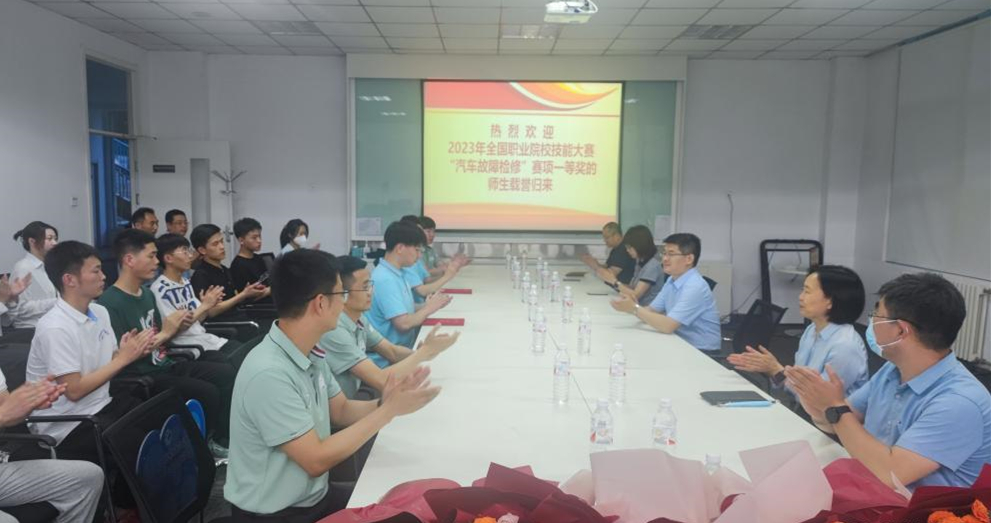 党委书记刘志伟在航海路校区迎接载誉归来的获奖团队,亲切慰问获奖师生。在欢迎座谈会上,刘志伟向参赛团队表示祝贺,代表学校向付出不懈努力的师生表示感谢。他指出,参赛团队勇夺国赛一等奖,得益于学校坚守为党育人、为国育才的初心使命,得益于广大教师以生为本,立足本职,兢兢业业,默默奉献,诲人不倦的担当付出,得益于参赛团队发扬一丝不苟,精益求精,敢打必胜,不畏强手,勇争第一的拼搏精神,是我校多年来积累沉淀,特色办学成果在国家级平台上的一次全面展示。台上一分钟,台下十年功。每一次大赛不仅仅是对选手技能的锤炼,更是对选手精神意志的磨砺。各院系要认真总结学生参加技能大赛全过程各环节,只有不断积累打磨,才能厚积薄发;汽车学院要做好经验分享及传承工作,将技能大赛的成功经验、拼搏精神分享给全校师生,激励大家努力学习,踔厉奋发,勇攀高峰,再创佳绩。