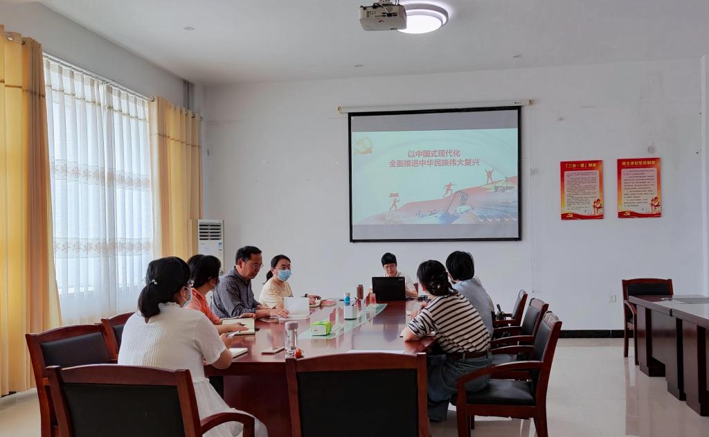 5月17日下午,校纪委书记赵兰州在郑东校区致用楼会议室以《以中国式现代化全面推进中华民族伟大复兴》为题,为公共基础教学部全体党员上党课。