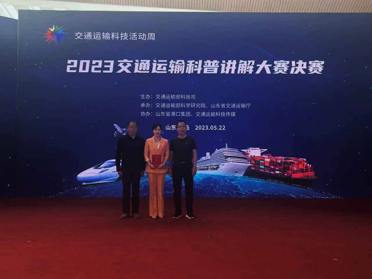 副校长龚全武带队全程参与现场决赛。决赛中,刘雅莉老师在科普视频展示、自主命题现场讲解等环节,以严谨的思维、生动的语言讲解,展现了学校科普工作者扎实的知识储备和良好的精神风貌,得到大赛评委的认可,最终以优异的成绩获得2023年交通运输部科普讲解大赛二等奖。
