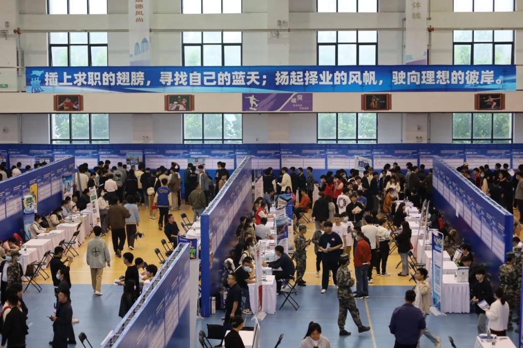 双选会现场人头攒动、气氛热烈。一大早,用人单位和求职学生在志愿者的指引下乘坐校园摆渡车有序入场。用人单位通过招聘海报、宣传单页和专人接待、职业介绍等吸引求职学生的关注。求职的同学们也早早带着简历来到现场,认真比较、选择心仪的岗位。双方就企业情况、用人要求、薪资待遇及发展规划等热情攀谈,根据双方意向进行深度面试。据统计数据显示,当天求职学生共投递简历近50000份,4300多名退役大学生士兵、毕业生与用人单位达成了就业意向。