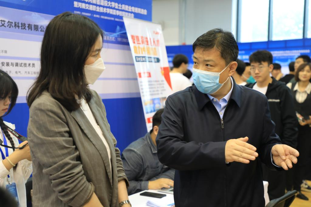 5月27日,由河南省教育厅主办,河南交通职业技术学院(以下简称“河南交院”)和河南省大中专学生就业服务中心承办的2023年河南省退役大学生士兵就业专场双选会暨河南交院夏季校园双选会在河南交院郑东校区顺利举行。河南省教育厅学生处处长李班、学校党委书记刘志伟出席双选会并现场指导。来自省内外的349家企业提供就业岗位16000多个,8000多名退役大学生士兵和学校毕业生、实习生参加双选会。