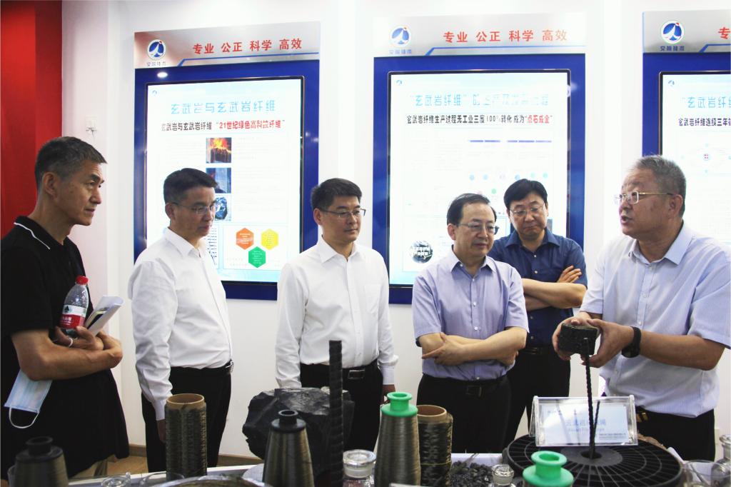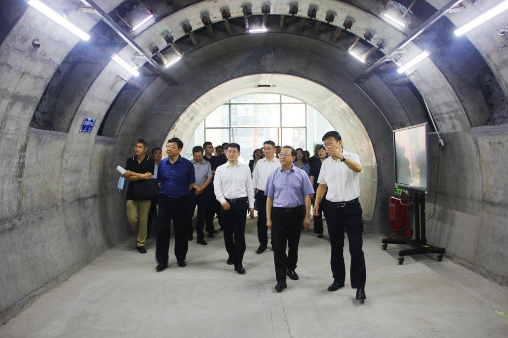 调研中,谢玉安一行先后深入我校玄武岩纤维科技展厅、超大力值多功能力学试验室、高速公路隧道仿真实训基地、轨道交通综合实训中心、装配式建筑实训中心等场所,观看我校的材料展品以及现场模拟实训演示,听取现场讲解,与工作人员互动交流,体验模拟实训设备。
