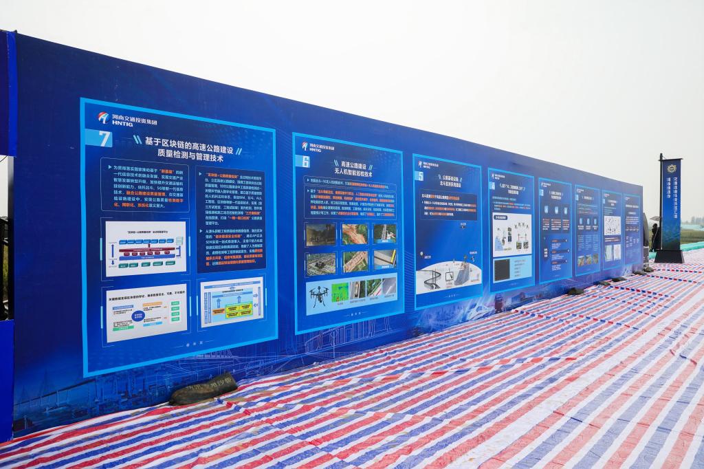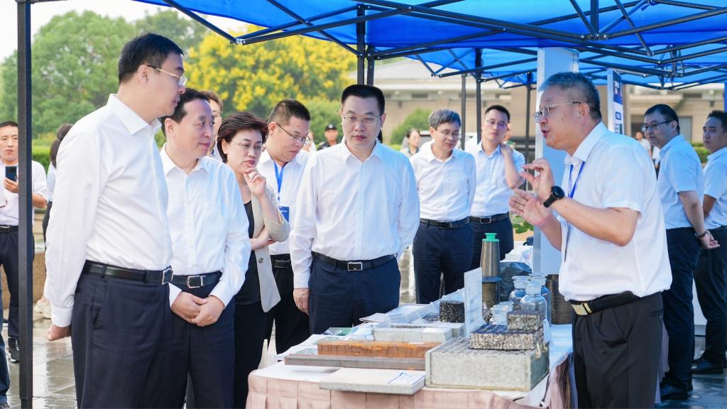 河南交通职业技术学院党委书记刘志伟、绿色高性能材料应用技术交通运输行业研发中心主任邵景干受邀参加,并莅临示范工程现场观摩。校属企业河南交院技术集团在示范工程推进会现场设置五大展位,多场景展示集团公司在科技创新、技术推广、产教融合等方面的累累硕果。