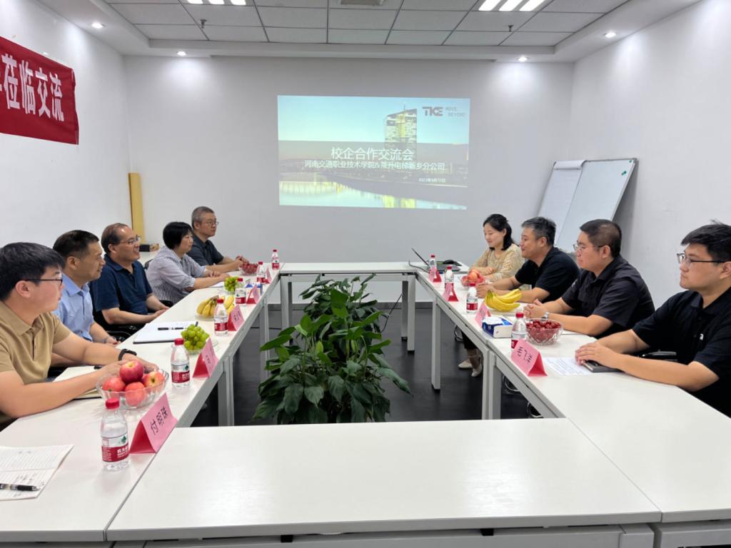 9月12日上午,党委副书记孙建立带领轨道交通学院班子成员、专业教师及校企专干等一行6人到蒂升电梯(中国)有限公司新乡分公司(简称“蒂升电梯有限公司”)走访交流,洽谈校企合作相关事项。公司总经理闫政、业务经理杨科辉、人事经理杜艳丽等陪同参观。