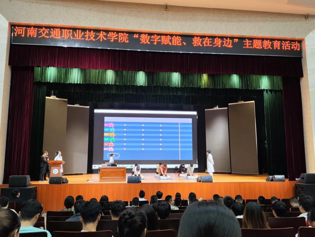 为扎实推进急救教育试点学校建设,提升大学生健康素养,普及急救知识和技能。10月18日下午,河南交通职业技术学院在文化艺术中心报告厅举办题为“数字赋能,救在身边”教育活动。学生工作部部长张震主持活动,各院(系)学生代表近800人参加活动。