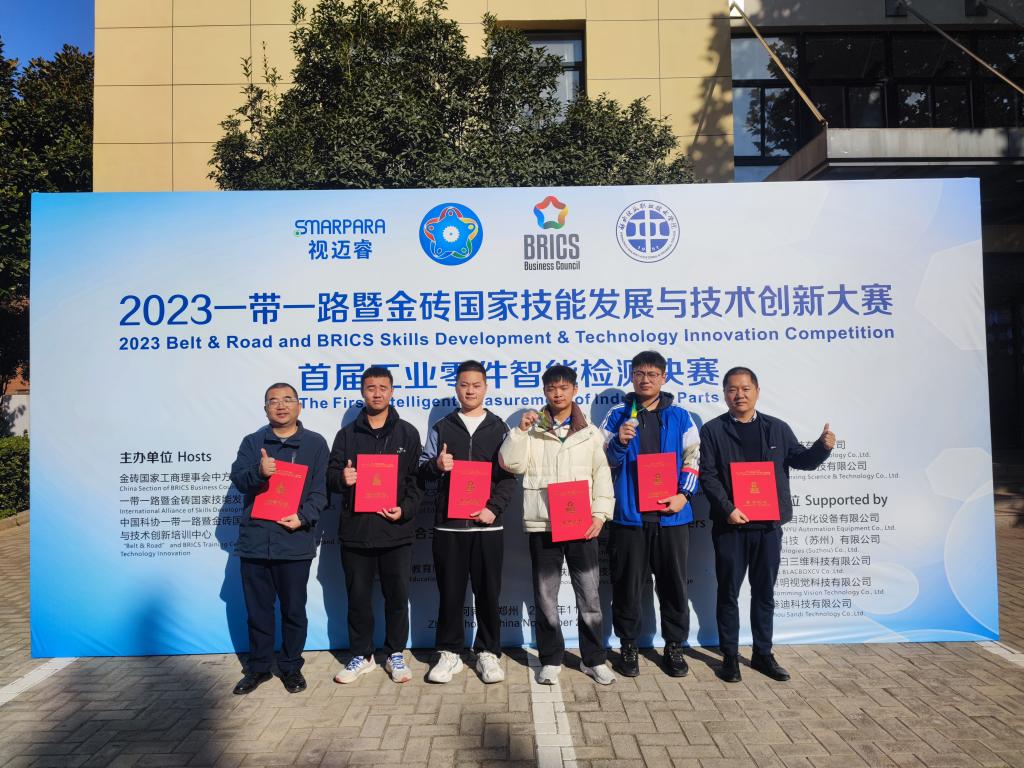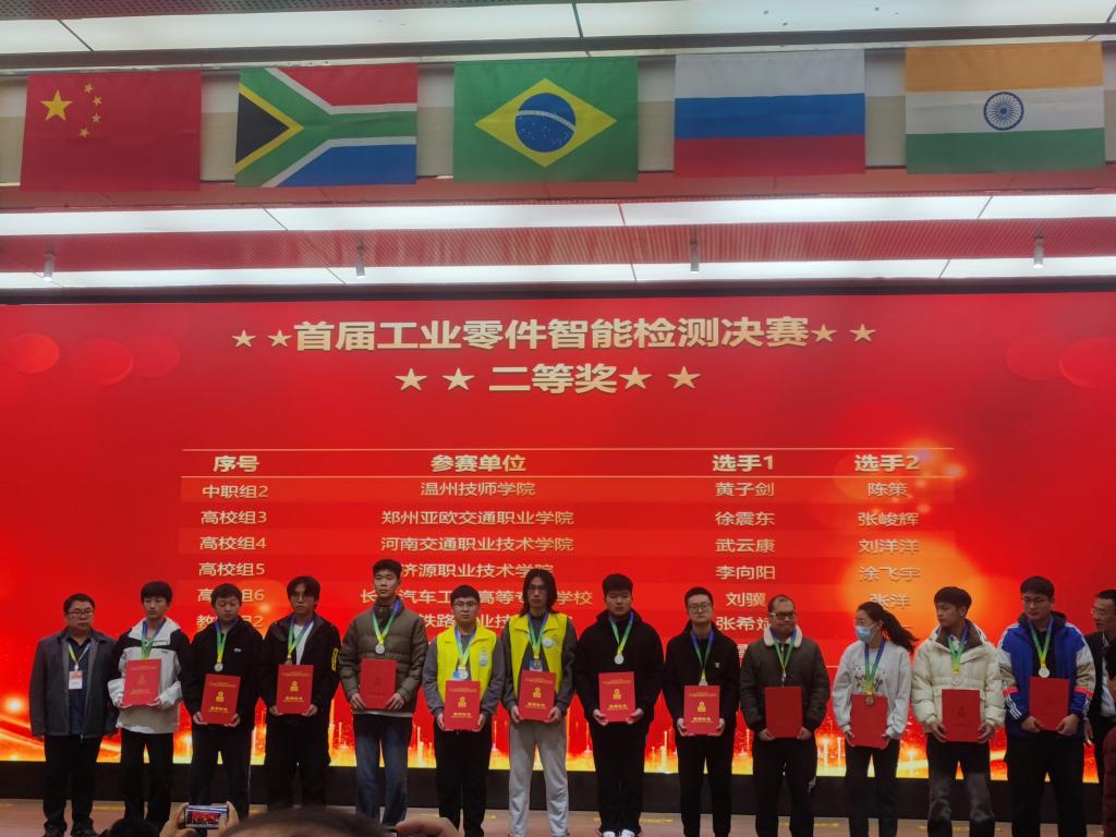 11月16日至19日,2023“一带一路”暨金砖国家技能发展与技术创新大赛首届工业零件智能检测决赛在郑州铁路职业技术学院举行。来自国内外的75支参赛队、121名参赛选手参加比赛。经过激烈角逐,我校汽车学院武云康、刘洋洋同学获得二等奖;王强、何新喜同学获“优秀奖”;指导教师李展、武超被评为“优秀指导教师”;我校获“优秀组织奖”。