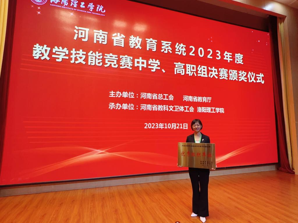 近日,河南省总工会、河南省教育厅联合印发《关于2023年河南省教学技能竞赛获奖情况的通报》(豫工文[2023]107号),校工会荣获“优秀组织单位”,我校10名参赛教师全部获奖。薛珊、冷商睿2位老师荣获一等奖;刘辉、袁留奎、陈怡文3位老师荣获二等奖,门芸、郭凤丽、刘阳、牛军燕、申莹莹5位老师荣获三等奖。其中薛珊老师通过初赛评比,成功入围现场决赛,并获得了全省高职理工综合组第二名的好成绩,获得“河南省优秀教学标兵”荣誉称号。我校在比赛中取得新突破。
