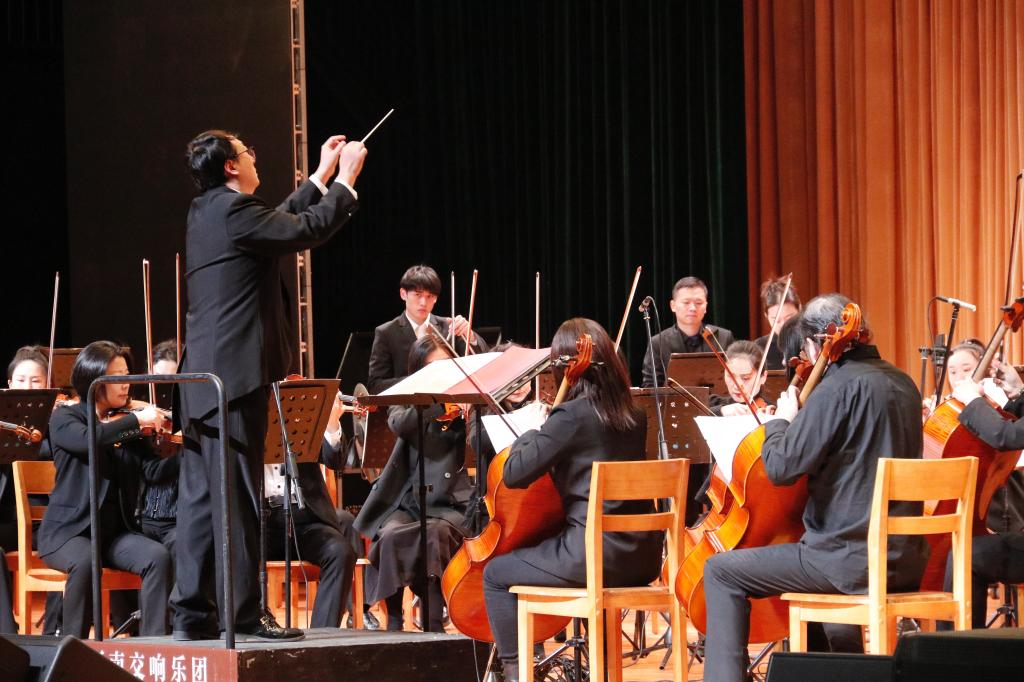 音乐会上,精彩曲目逐一上演,中外经典音乐的曲调深入人心,艺术家们富有感染力的表演触动着每一位观众的心弦,时而舒缓悠扬时而气势豪迈的旋律,让师生们深切领略到交响乐的艺术魅力。活动中,乐团指挥马骥先生直观生动地为师生介绍了交响乐团的乐器和音乐知识,用实际行动践行艺术普及、文化惠民。