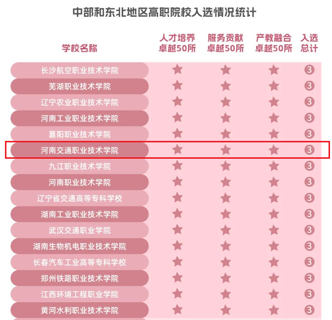 2023年12月28日,由中国教育科学研究院编著、高等教育出版社出版的《2023中国职业教育质量年度报告》在北京发布。报告显示,我校入选2023年中部和东北地区人才培养卓越高等职业院校50强、服务贡献卓越高等职业院校50强、产教融合卓越高等职业院校50强,是河南省同时入选三项50强榜单的5所高职院校之一。