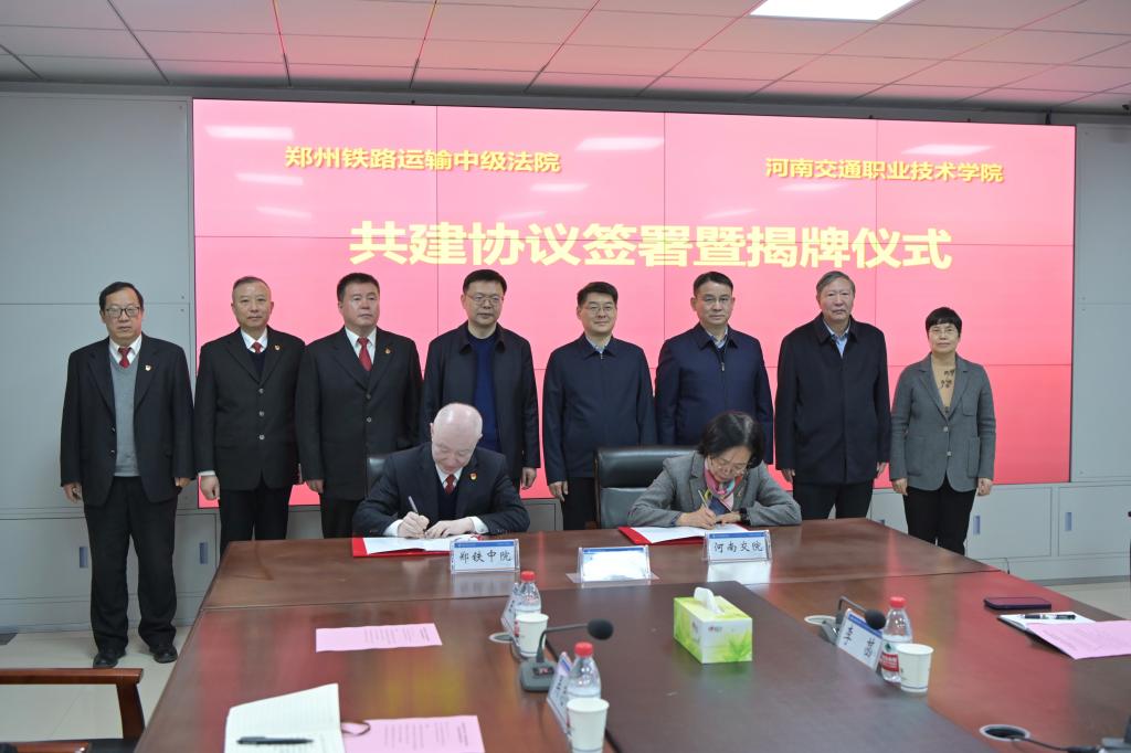 1月18日,我校与郑州铁路运输中级法院共建协议签署暨揭牌仪式在郑东校区举行。郑州铁路运输中级法院党组书记、院长王辉,学校党委书记刘志伟出席仪式,共同为河南交通职业技术学院“思政课实践教学基地”、郑州铁路运输中级法院“党建创新实践基地”揭牌;双方领导班子成员、职能部门负责同志参加签约揭牌仪式。仪式由我校校长焦宏涛主持。