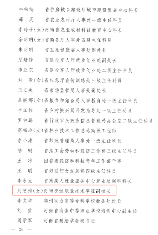 近日,河南省人民政府印发《关于表彰首届河南省技能人才高地建设工作先进集体和先进个人的决定》(豫政〔2024〕7号),副校长刘芝梅获评首届河南省技能人才高地建设工作先进个人。