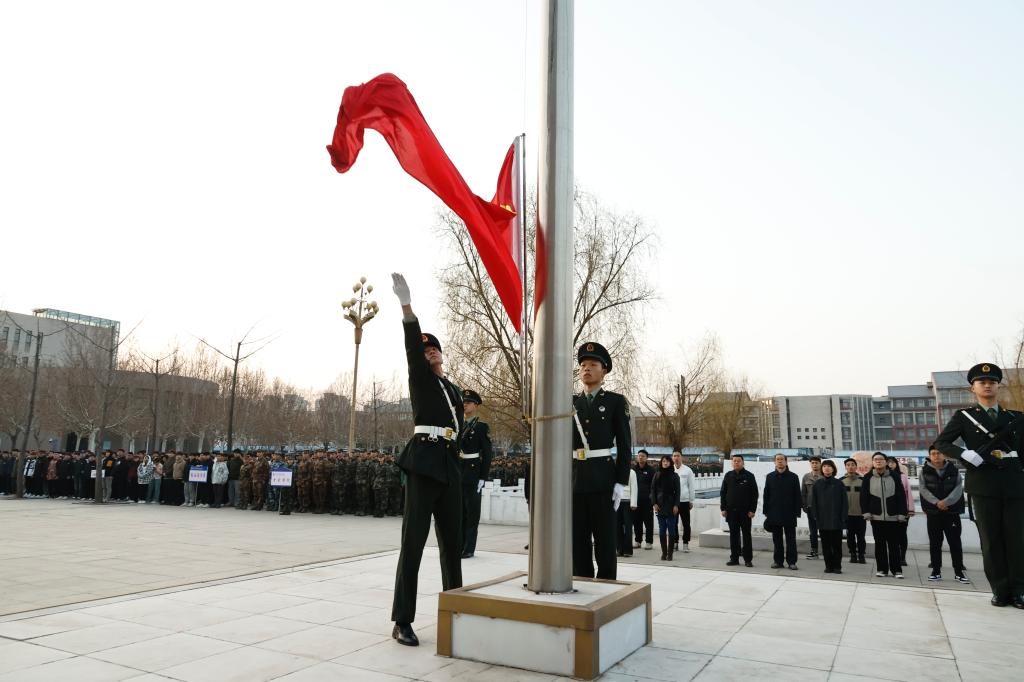 3月11日,学校2024年春季新学期升旗仪式暨开学第一课在郑东校区图书馆前举行。工会主席朱学军出席仪式,学生工作部(处)相关负责人、各院(系)总支书记、组织员、教师代表和10000余名学生参加活动,升旗仪式由学生工作部(处)负责人主持。