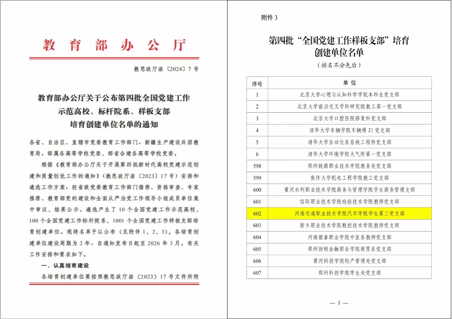近日,教育部公布了第四批新时代高校党建示范创建和质量创优工作遴选结果,学校汽车学院学生第三党支部入选第四批“全国党建工作样板支部”培育创建单位,学校党建工作取得突破性成果。