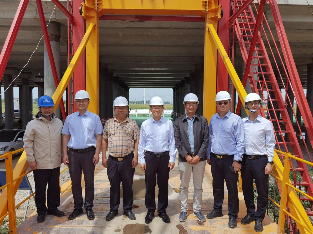 刘志伟一行先后深入项目三标和四标的桩板式路基工程、智慧板梁生产线、服务区房建等施工现场,观摩了我校交院集团公司负责检测的水稳基层大厚度施工成品项目,听取我校公路学院1999级优秀毕业生马春锋副总经理关于项目施工技术难点和创新技术应用情况介绍。