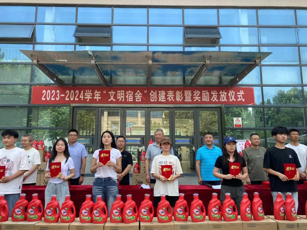 6月24日下午,学校在郑东校区举行2023-2024学年“文明宿舍”创建表彰暨奖励发放仪式。工会主席朱学军出席仪式,学生工作处、各院(系)学生工作负责人,获评文明宿舍创建先进个人的老师和学生代表参加仪式。
