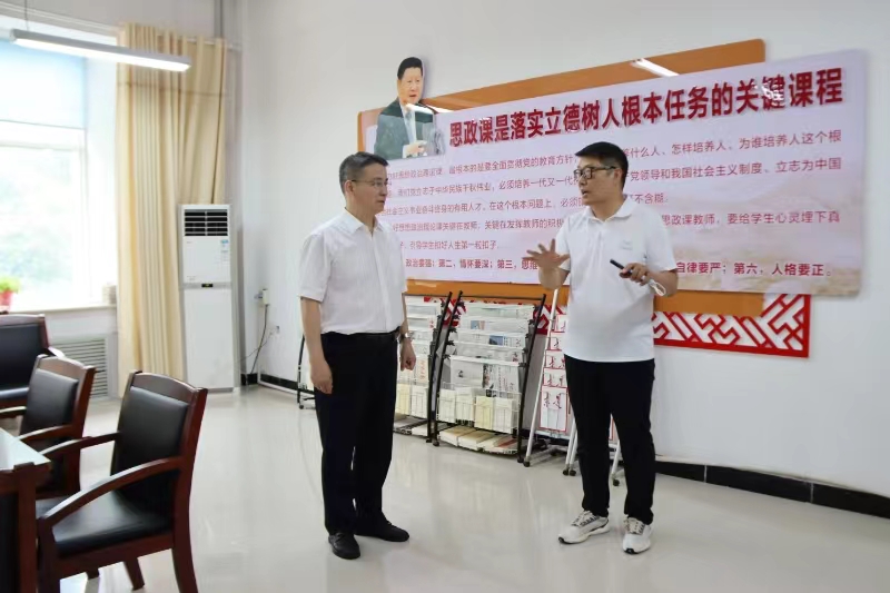 7月5日,校长焦宏涛到马克思主义学院进行了调研并主持召开了我校新时代思政课建设推进会,副校长刘芝梅、李小强出席会议。会议传达学习了习近平总书记对学校思政课建设作出的重要指示精神、省委常委会研究思政课建设的会议精神以及全省新时代学校思政课建设推进会会议精神,并结合学校思政课建设情况,对下一步思政课建设工作进行了安排部署。