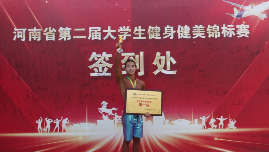 9月20日至9月22日,由河南省学生体育总会主办的河南省第二届大学生健身健美锦标赛在信阳航空职业学院举行。此次锦标赛共有来自全省29所高校的200余名运动员同场竞技。经过3天的激烈角逐,我校健身健美队员康明峻在比赛中凭借卓越的实力和出色的表现,突破重重困难,荣获甲组男子健体B组冠军。