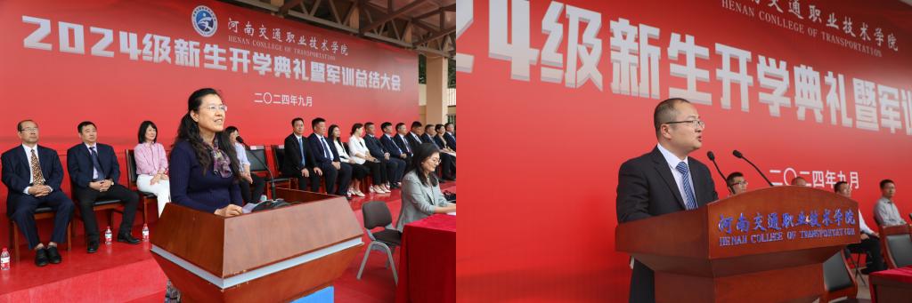 物流学院院长、河南省职教专家、二级教授李建丽,汽车学院副院长、交通运输青年科技英才、教授杨长征作为教师代表发言,寄语2024级新生怀揣梦想,承载希望,开拓创新,拼搏奋斗,奉献强国建设,成就出彩人生。