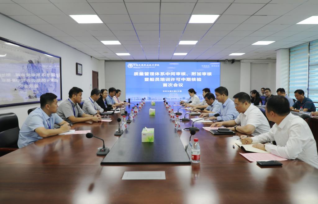 鲁云杰对我校在交通人才培养方面的贡献给予了积极评价,他指出,河南省在船员数量、航运企业数量和运输船舶数量等方面均处于全国前列,亟待加强高质量船员队伍建设。他表示,河南交通职业技术学院由河南省交通运输厅、河南省教育厅共建,省交通运输厅在学校专业建设、科技创新、行业交流、技术培训等方面的支持力度不减、标准不降、措施不变,将继续从政策、资金、项目等方面支持学校发展。他感谢审核组专家对河南省船员教育与培训工作给予指导和帮助,并预祝此次审核工作圆满完成。