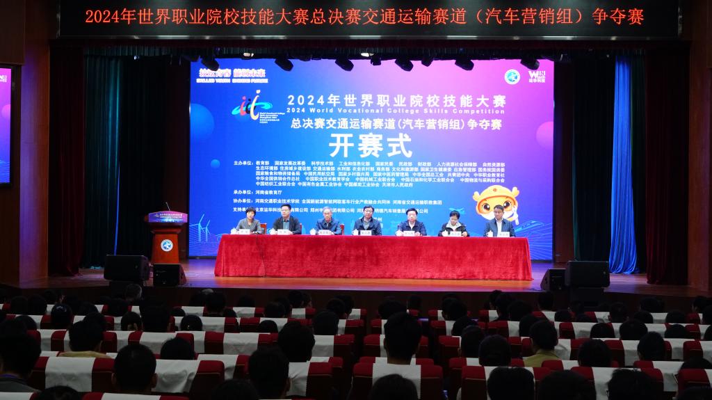 技炫青春,能创未来。10月27日,2024 年世界职业院校技能大赛交通运输赛道汽车营销组争夺赛开赛式在河南交通职业技术学院举行。本次大赛由教育部、国家发展改革委、科学技术部、工业和信息化部等部门联合主办,河南省教育厅承办,河南交通职业技术学院协办。来自全国各省、自治区、直辖市和新疆生产建设兵团的63支参赛队伍和赛区执委会的领导、专家、裁判员、仲裁员,裁判巡视员、纪律监督员,企业代表和媒体记者齐聚一堂,在雄壮的国歌中共同见证大赛启幕。