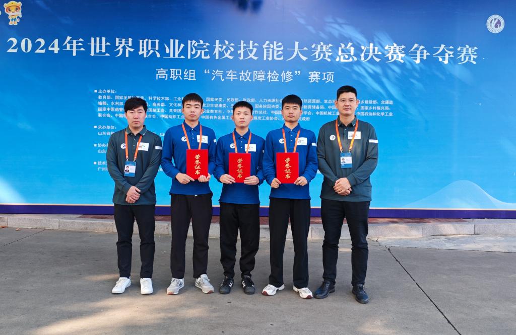 10月26日至27日,2024年世界职业院校技能大赛总决赛争夺赛高职组“汽车故障检修”赛项在山东潍坊举行,经过来自全国各地的62支队伍激烈角逐。我校汽车学院教师朱若岭、冷俊辉指导的三位参赛学生贾永升、田浩然、张明慧喜获银奖。