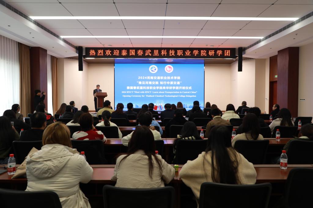 11月23日,“豫见河南交院 知行中原交通”泰国春武里科技职业学院来华研学团开班典礼在学校郑东校区举行。泰国春武里科技职业学院院长万娜•丹普拉帕、副院长奔姹拉丝•丹普拉帕、校长顾问李华,我校校长焦宏涛、副校长李小强出席仪式。开班仪式由副校长王玮主持。来自泰国春武里职业学院师生代表及我校相关职能部门负责人、研学专班工作人员50余人共同参加仪式。