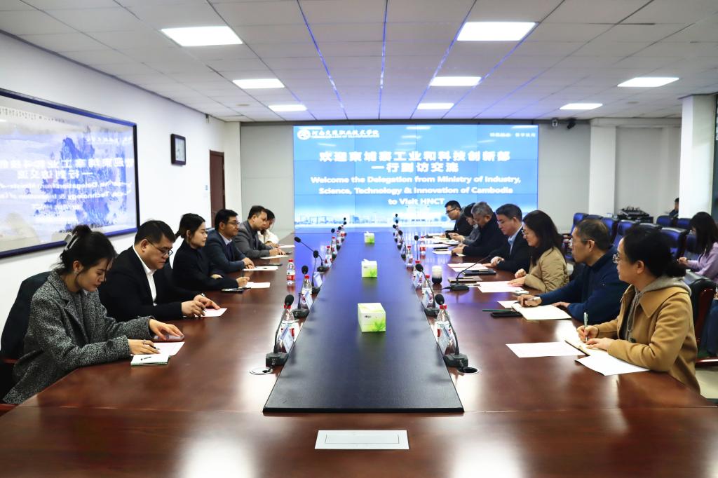 焦宏涛对切亚•莱希司长一行来访表示热烈欢迎,并简要介绍了学校国际化办学情况。他表示,学校与柬埔寨政府部门的交流合作由来已久,此次获批柬埔寨工业和科技创新部“中文+职业技能”项目立项,是学校参与中柬两国职业教育合作交流的又一重要实践。他希望双方在“一带一路”倡议框架内,以“中文+职业技能”项目为基础,共建河南交院柬埔寨“中文+职业技能”培训基地,面向柬方从业人员联合开展新能源汽车与交通设施等领域技术技能培训,推进相关专业标准开发与输出,为柬埔寨交通行业急需紧缺技术技能人才培养作出积极贡献。