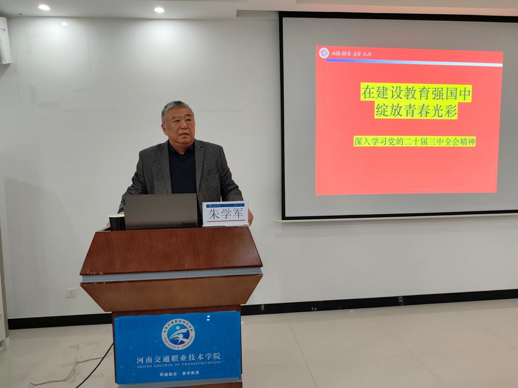 12月4日下午,校工会主席朱学军在4B310会议室以“在建设教育强国中绽放青春光彩”为题为航运海事系学生入党积极分子、学生干部代表和航海系全体教师讲授思政课。