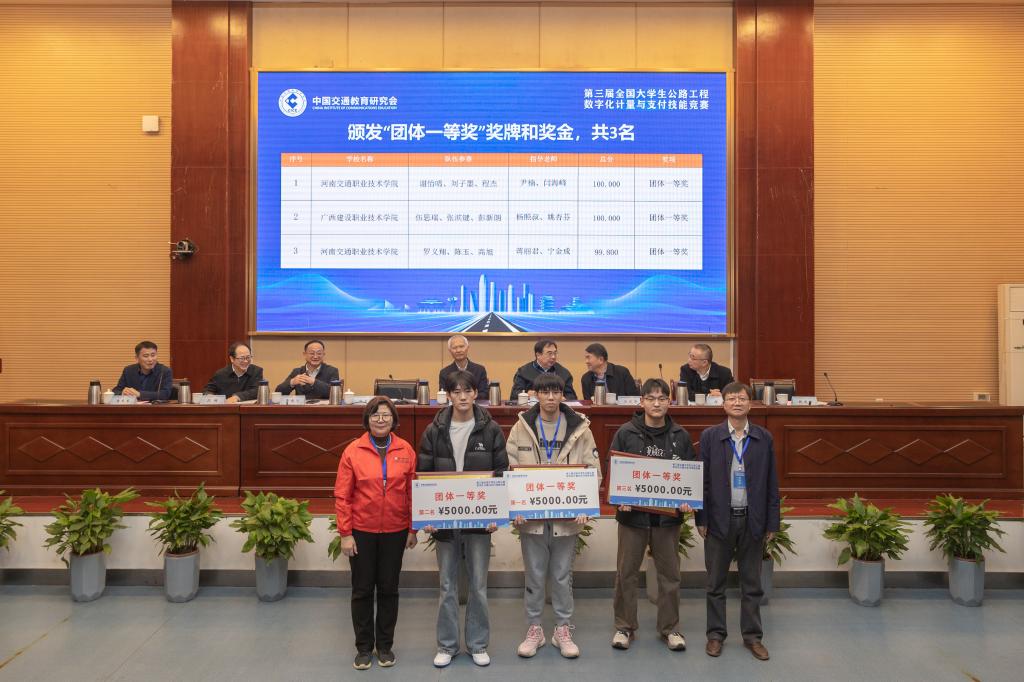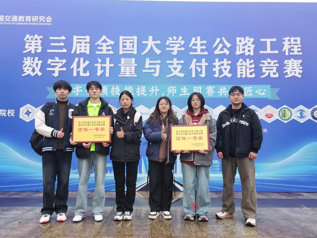 12月4日至6日,第三届全国大学生公路工程数字化计量与支付技能竞赛在湖南长沙举行,来自全国各地的33支代表队100余名选手参赛。我校公路学院道路造价专业选派两支队伍参赛。经过激烈的角逐,一队选手造价学子谢怡晴、刘子墨、程杰以满分的成绩荣获第一名;二队选手造价学子罗义翔、陈玉、高旭以优异的成绩荣获第三名。双双斩获一等奖。