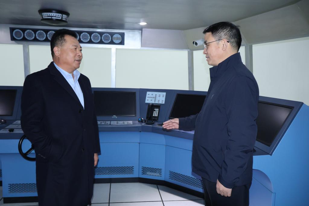 座谈会后,焦宏涛陪同赵玮一行参观了航运海事系实训室。