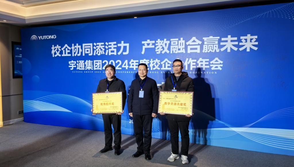 会上,宇通集团人力资源、校企合作等部门负责人先后对宇通集团未来发展趋势及人才需求情况进行科学分析,总结回顾了2024年校企合作取得的成果,发布了2025年校企合作规划,表彰了在2024年度校企合作中做出突出贡献的院校。我校荣获宇通集团2024年校企合作“优秀组织奖”“教学资源共建奖”两个奖项。