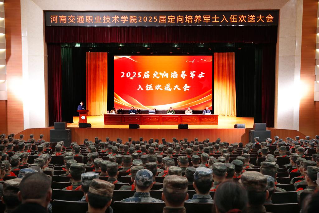 3月19日,学校在郑东校区举行2025届定向培养军士光荣入伍欢送大会。河南省军区动员局参谋尚志坤、郑州警备区动员处上校处长尚永新、郑州市二七区人武部政工科科长徐义文、校长焦宏涛、工会主席朱学军出席大会,各职能部门和培养院系负责人参加大会,党委副书记李菡主持大会。