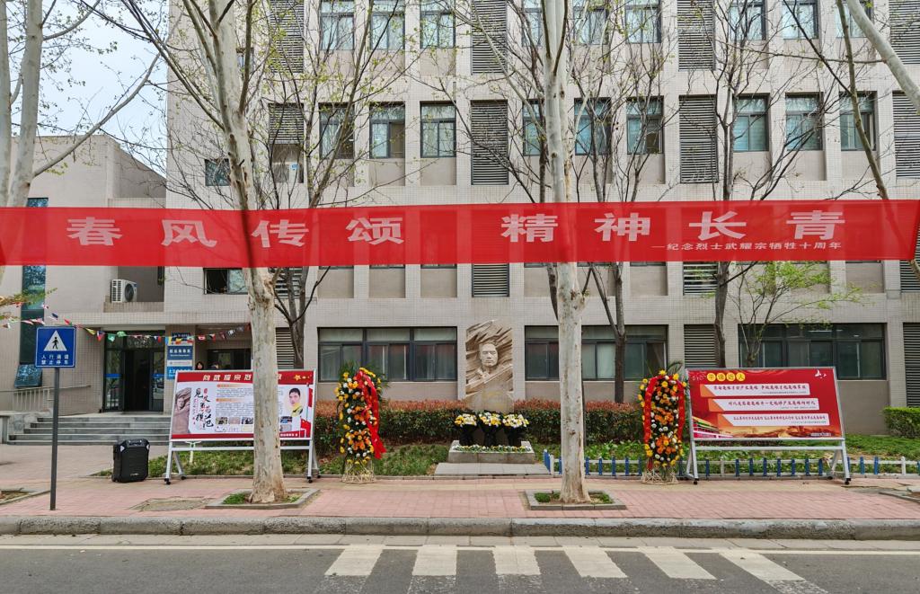 悼念活动中,全体人员在武耀宗烈士雕像前肃立默哀,向烈士致敬。校领导、烈士家属、现场师生代表依次向武耀宗烈士敬献花束。