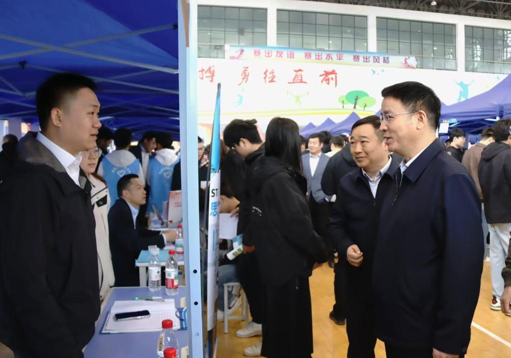 校长焦宏涛、工会主席朱学军、副校长李小强分别深入两个校区双选会现场,与用人单位代表、毕业生亲切交流,详细询问用人单位的人才需求情况,深入了解毕业生的求职就业状况,认真听取用人单位对学校深化校企合作、提高人才培养质量、促进学生高质量就业等方面的意见建议,对用人单位长期以来给予学校的支持表示感谢;鼓励各院系发挥专业特色优势,拓宽就业渠道,提供精准就业服务,与用人单位建立互惠共赢长期合作机制,促进毕业生高质量充分就业。