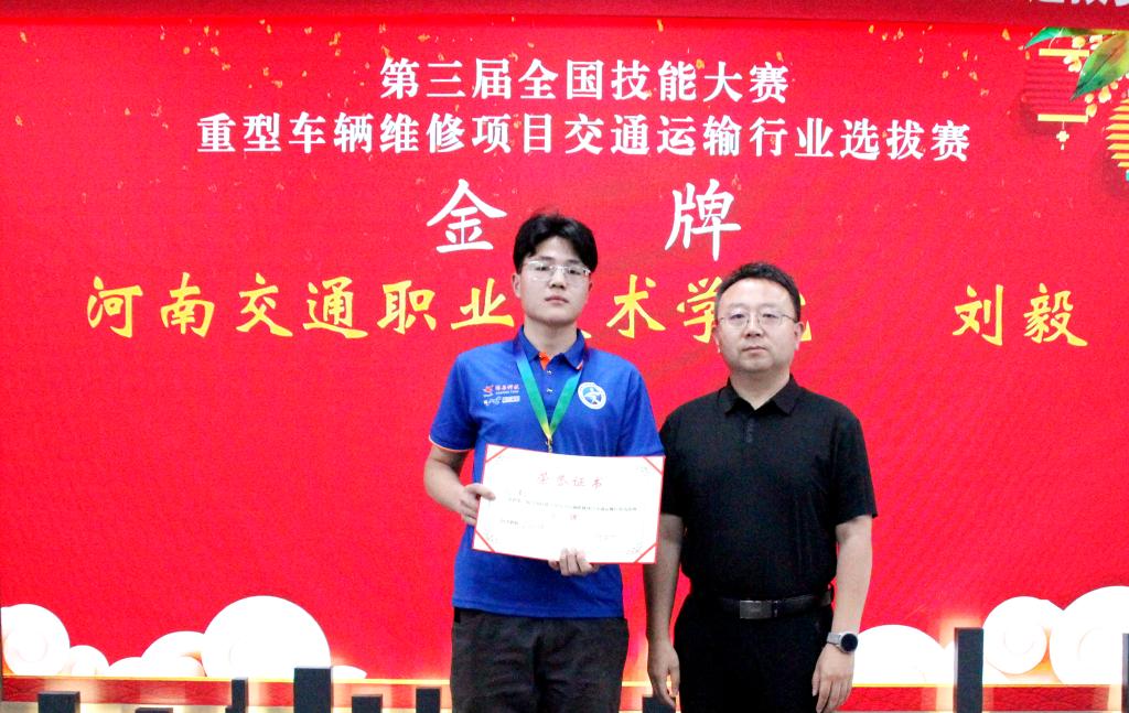 我校荣获大赛“特殊贡献奖”,学生刘毅以优异成绩喜获金牌,将代表交通运输部参加中华人民共和国第三届职业技能大赛。