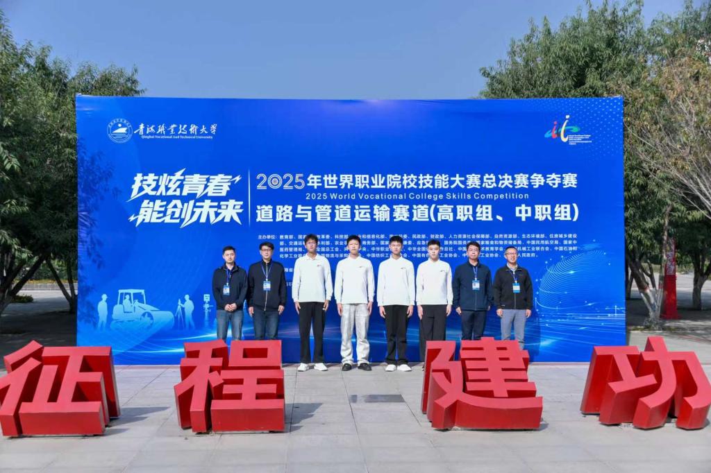 9月9日-13日,2025年世界职业院校技能大赛总决赛争夺赛道路与管道运输赛道(高职组)在青海职业技术大学圆满落幕。学校公路学院学生王熙元、杨田野、马梓涵和邓贺嘉在王永、曹帅、王涛、石坤鹏等老师指导下,从激烈竞争中脱颖而出获铜奖。