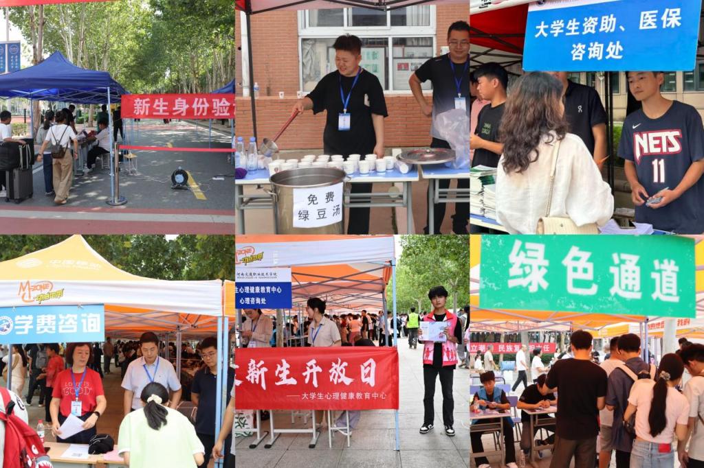 报到期间,迎新氛围喜庆热烈,热情洋溢的欢迎条幅,别具匠心的拍照打卡点,仪式感满满的背板布置,向踏入校门的“萌新”学子致以最热烈的欢迎。在各学院迎新报到接待点,学院负责人、专业教师和辅导员耐心为新生和家长答疑解惑,帮助新同学安全快捷地办理线下报到手续,实现了从校门到宿舍暖心服务的“无缝对接”。